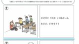 表情理解ができるようになったら、次のステップとして「場面の中での表情の理解」に取り組んでいきます。このプリントでは、2種類の簡単な場面イラストを見ながら、登場人物の表情がどんな気持ちを表しているかを読み取る練習をします。単に「おどろく」「おこる」といった感情を当てるだけでなく、「なぜその表情をしているのか」「どんな出来事があったからその気持ちになったのか」といった“理由”まで考えられるようになることが目標です。