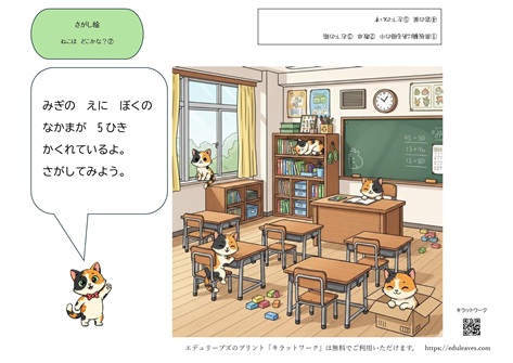 猫を全部見つけられたら、「よくがんばったね!」と褒めてあげることで、子どもたちの達成感や意欲もさらに高まります。