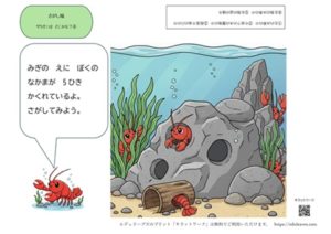 今回は猫からザリガニにチェンジ。さがし絵や間違い探しの導入にどうぞ。