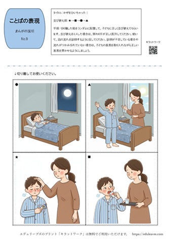 今回ご紹介するのは、4コマ漫画を使って“順番に沿って説明する力”を育てる練習プリントです。