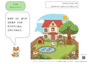 今回ご紹介するのは、「家と庭の絵の中から犬を探す」という、シンプルながら多くの力を育てられる課題です。